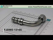 FJ5985-1216S E-Z Clip System by Danfoss | Female O-Ring 90° Elbow (Short Pilot) | A/C Refrigeration Fitting | -12 Female O-Ring Short Pilot x -16 Hose Barb | Steel
