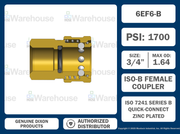 6EF6-B by Dixon Valve | Hydraulic Quick Disconnect Coupling | E-Series | 3/4" Female NPTF x 3/4" Straight-Through Interchange | Socket | Nitrile Seal | Brass