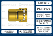12EF12-B by Dixon Valve | Hydraulic Quick Disconnect Coupling | E-Series | 1-1/2" Female NPTF x 1-1/2" Straight-Through Interchange | Socket | Nitrile Seal | Brass
