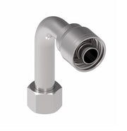 1AA4FJC4 Aeroquip by Danfoss | 1 & 2 Wire TTC Female JIC 37° Swivel 90° Long Drop Elbow (FJC) Crimp Fitting | -04 Female JIC 37° Swivel x -04 Hose Barb | Steel