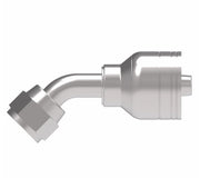 1AA6FJA6 Aeroquip by Danfoss | 1 & 2 Wire TTC Female JIC 37° Swivel 45° Elbow (FJA) Crimp Fitting | -06 Female JIC 37° Swivel x -06 Hose Barb | Steel