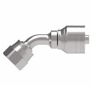 1AA8FJA6 Aeroquip by Danfoss | 1 & 2 Wire TTC Female JIC 37° Swivel 45° Elbow (FJA) Crimp Fitting | -08 Female JIC 37° Swivel x -06 Hose Barb | Steel