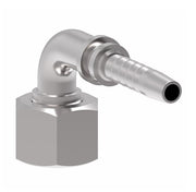 Female O-Ring Face Seal (ORS) Swivel 2-Piece Hose Crimp Fitting - Female O-Ring Face Seal Swivel x Hose Barb - 90° Elbow