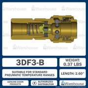 3DF3-B by Dixon Valve | Pneumatic Quick Disconnect Coupling | D-Series | 3/8" Female NPTF x 3/8" Automatic Industrial Interchange | Socket | Nitrile Seal | Brass