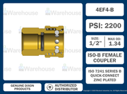 4EF4-B by Dixon Valve | Hydraulic Quick Disconnect Coupling | E-Series | 1/2" Female NPTF x 1/2" Straight-Through Interchange | Socket | Nitrile Seal | Brass