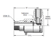 9SS4MP25XMJ6-Z-ETP by Super Swivel | 6802-Z-ETP | 1/4-18 Male Pipe NPTF x 9/16-18 Male 37° JIC | 0.250" Through Hole | 90° Elbow | Zinc | Extreme Viton® Seal