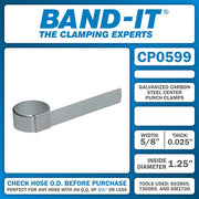 CP0599 by Band-It | Center Punch Clamp | 1.25" ID | 5/8" Width | 0.025" Thickness | Galvanized Carbon Steel | 100/Box