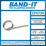 CP0799 by Band-It | Center Punch Clamp | 1.75" ID | 5/8" Width | 0.025" Thickness | Galvanized Carbon Steel | 100/Box