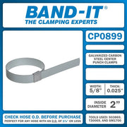 CP0899 by Band-It | Center Punch Clamp | 2" ID | 5/8" Width | 0.025" Thickness | Galvanized Carbon Steel | 100/Box