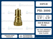 H3F3-B by Dixon Valve | Hydraulic Quick Disconnect Coupling | H-Series | 3/8" Female NPTF x 3/8" ISO-B Interchange | Plug | Brass