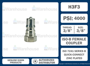 H3F3 by Dixon Valve | Hydraulic Quick Disconnect Coupling | H-Series | 3/8" Female NPTF x 3/8" ISO-B Interchange | Plug | Steel