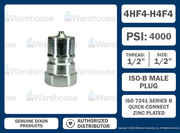 H4F4 by Dixon Valve | Hydraulic Quick Disconnect Coupling | H-Series | 1/2" Female NPTF x 1/2" ISO-B Interchange | Plug | Steel