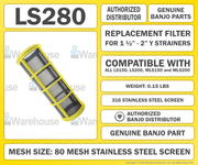Banjo Manifold Flange Connections - Replacement Parts - LS280 - 80 Mesh Screen