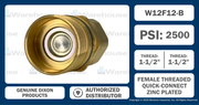 W12F12-B by Dixon Valve | Hydraulic Quick Disconnect Coupling | W-Series | 1-1/2" Female NPTF x 1-1/2" Wingstyle Interchange | Plug | Nitrile Seal | Brass