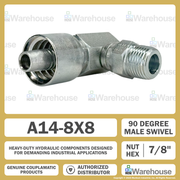 A14-8x8 by Couplamatic | A Series Coupling | 1/2" Hose ID x 1/2-14 Thread Male Swivel NPTF | 90° Elbow