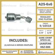A25-6x6 by Couplamatic | A Series Coupling | 3/8" Hose ID x 9/16x18 Thread JIC Seat Female Swivel | 45° Elbow