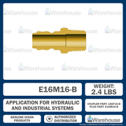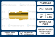 E16M16-B by Dixon Valve | Hydraulic Quick Disconnect Coupling | E-Series | 2" Male NPTF x 2" Straight-Through Interchange | Plug | Brass