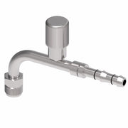 FJ3135-01-1010S E-Z Clip System by Danfoss | Male O-Ring 90° Elbow (Short Pilot) with R134a Low Side Port | A/C Refrigeration Fitting | -10 Male O-Ring Short Pilot x -10 Hose Barb | Steel