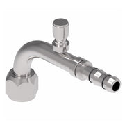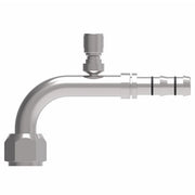 FJ3460-01-1010S E-Z Clip System by Danfoss | Female O-Ring 90° Elbow (Long Pilot) with Switch Port (M12 X 1.5) | A/C Refrigeration Fitting | -10 Female O-Ring Long Pilot x -10 Hose Barb | Steel
