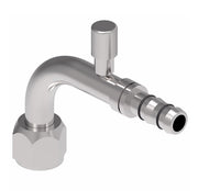 FJ3892-01-1010S E-Z Clip System by Danfoss | Female O-Ring (Long Pilot) with R134a Low Side Port (Metric Thread) 90° Elbow | A/C Refrigeration Fitting | M24 Female O-Ring Long Pilot x -10 Hose Barb | Steel