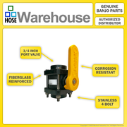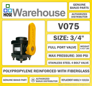 V075 by Banjo | 4 Bolt Ball Valve | Full Port | 3/4" Female NPT x 3/4" Female NPT | Opening Thru Ball: 3/4" | 300 PSI | Polypropylene